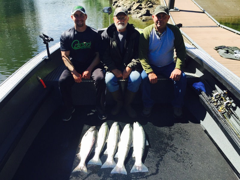 The spring king, summer king and sockeye salmon seasons are open at this time to. We usually also catch some of them. Where else can you catch springers, summer kings, sockeye salmon and summer steelhead in the same day? This is a wonderful fishing opportunity.
